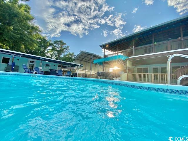 EVERYTHING on your wish list in one gorgeous coastal home. No HOA, new roof 2022, new HVAC 2023, new pool salt system 2023. This home is your outdoor living paradise with a tranquil and private backyard including a salt water pool with built-in seating, changing room, outdoor shower, and poolside outdoor kitchen and bar, ready to entertain! A wrap around porch reveals breathtaking sunsets over the intercoastal waterway as you watch the boats go by. Space galore! Home being offered fully furnished! Inside the home is 3500 sq feet of space including 3 full kitchens and laundry rooms, with separate entrances for 2 mother in law suites allowing potential for Airbnb income, adult children, your guests, entertaining, or an ultimate man cave! The primary living space is upstairs providing waterway views with a multitude of windows and skylights for a bright, beachy feel. The kitchen boasts stainless steel appliances, granite countertops and an oversized island, perfect for cooking, serving, and eating in. The dining room seats 20+, allowing for family gatherings for the holidays! The master bedroom features 2 walk in closets, an electric fireplace, and an en-suite bathroom with a jacuzzi tub and separate walk in shower. 2 other bedrooms are located in the opposite side of the home, providing master bedroom privacy. The large laundry room features its own sink and extended countertops and cabinets for folding and storage. Off the laundry room you'll find a bonus room equipped with a half door for your special furry friends to have their own room. Downstairs you'll find your home gym facing the pool, a game room, large storage room, and the changing room for the pool. There is a separate pool house wired with outdoor speakers to enjoy at the pool and outdoor kitchen. There is a large well lit covered parking area for your boat or RV. Off-street parking for over 12 vehicles. This home is a luxury oasis ready for entertainment and your large family. Real hardwood floors, crown molding, new lighting fixtures, and an outdoor security system. Seller offering one year maintenance for the pool! Don't miss your chance to own this completely loaded Myrtle beach home!